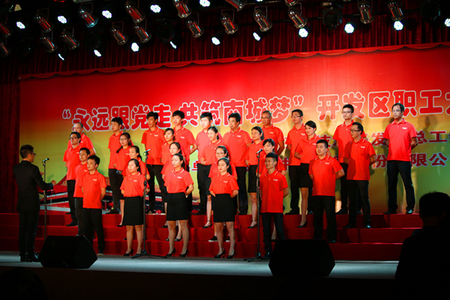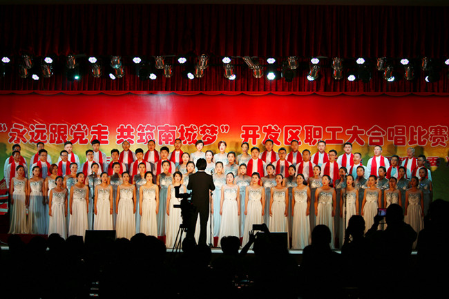比赛在张村片区合唱的《打靶归来》中拉开帷幕,接着,气势雄浑的《团结就是力量》、高亢激昂的《中国,中国,鲜红的太阳永不落》、寄托深情的《歌唱祖国》、唱响希望的《走向复兴》、气吞山河的《到敌人后方去》、节奏明快的《没有共产党就没有新中国》等一曲曲颂党恩、颂祖国的革命歌曲,抒发了开发区全体职工热爱祖国、的炽热情怀。精彩的演出不时将现场气氛推向高潮,博得全场观众的热烈喝彩。
