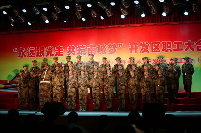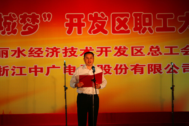 10月9日晚,浙江中广电器股份有限公司多功能厅内歌声飞扬。由丽水经济技术开发区总工会(两新工委)主办的“永远跟党走·共筑南城梦”开发区职工大合唱比赛在此隆重举行,来自开发区各机关单位、企业、片区的10支代表队用歌声表达了共建美丽南城的美好祝愿。丽水生态产业集聚区(经济技术开发区)党工委书记、管委会主任丁绍雄,市委组织部副部长陈立新,市总工会党组书记、常务副主席陈子民,集聚区(开发区)党工委副书记、南明山街道办事处党工委书记罗孝林等领导出席观看。