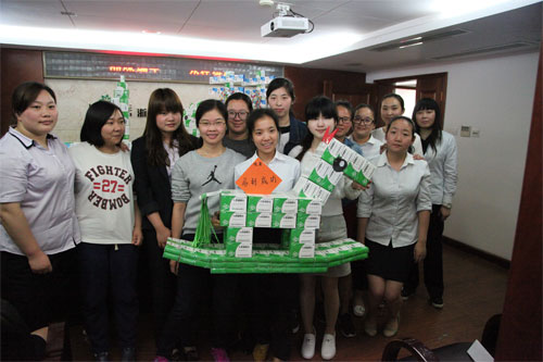 在产品堆头竞赛中,每个部门自成一队,利用公司产品银黄滴丸、人参健脾片、枫蓼肠胃康分散片等样盒,展开集灵感、智慧与手艺为一体的堆头大比拼。经过前期的齐心协力,参与的团队共完成了七个药品堆头,主要包括市场部的“龙舟”,维康大药房的“年年有余”、“G20”,商务部的“马到成功”,信息部的“维康大厦”等,为大家带来了各种惊喜和精彩的视觉感受。