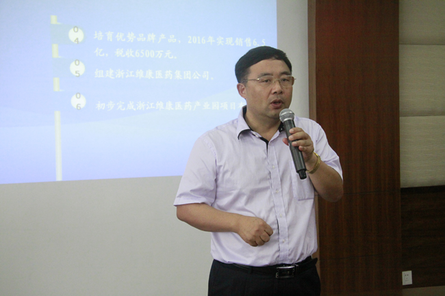 刘根才总经理就公司发展历程、现状、产能提升情况、产品线布局,质管体系强化建设,现代化生产设备运营等相关生产内容及延伸产业链工作要点、技能创新等做详细分享,并向大家透露浙江维康2015年至2017年中期战略规划,期间,维康计划完成标准化企业中药研究院建设;加快建立核心产品中药材基地;加强知识产权保护,争取2017年前荣获国家驰名商标;加快实施品牌战略,深化品牌内涵,培育竞争优势;成功组建浙江维康医药集团公司;初步完成浙江医药百万大健康产业园项目布局等六项指标落地,构建企业发展新战略。