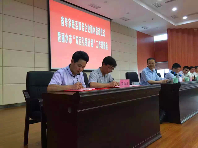2016年6月22日下午,省专家联系服务企业工作制度丽水启动仪式暨丽水市“双百引领计划”工作现场会在浙江众益制药股份有限公司召开,中共丽水市委常委、组织部部长胡侠,市人力资源和社会保障局局长吴善印及丽水市首批入选“百名博士入百家企业人才引领计划”人才项目的专家、企业代表参加会议。会上,戴德雄副总经理代表公司与丽水市林业科学研究院刘跃钧教授就入选项目正式签约。