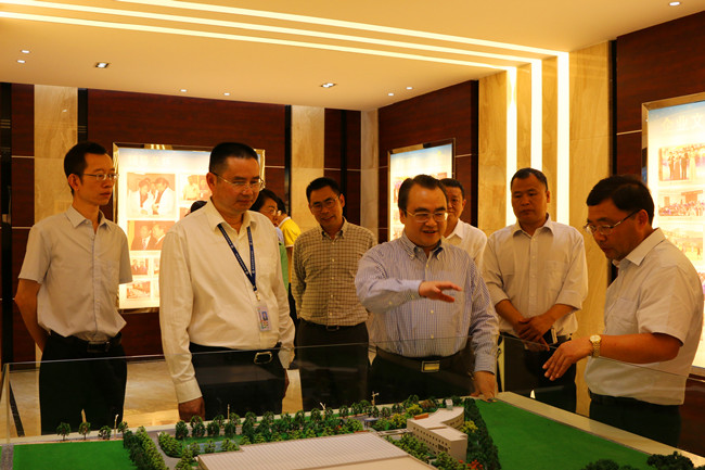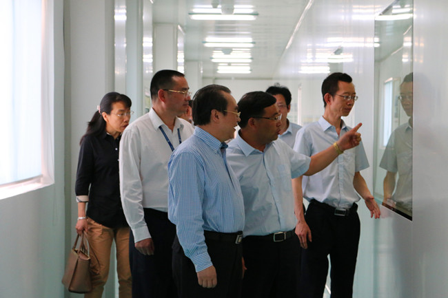 徐光文副市长一行参观了公司展示中心,并来到生产车间实地考察药品生产、设施设备等情况,对企业机器换人、信息化建设工作进行详细了解。卢卫芳副董事长就公司发展情况和战略规划进行了汇报,重点就科技研发、创新成果和医药大健康产业园项目推进情况作详细介绍。