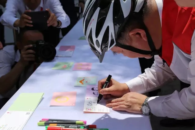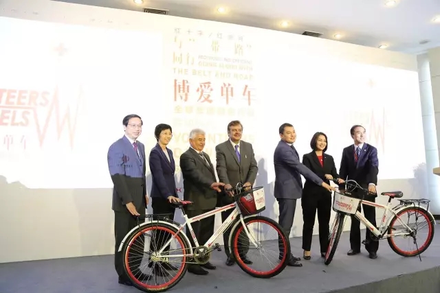 在陈竺和哈吉·阿西的共同见证下,中国红十字会副会长兼秘书长王平与红十字会与红新月会国际联合会东亚地区代表处主任彭玉美签署了博爱单车全球战略合作协议。随后,博爱单车由全球四位志愿者代表推出并展示。