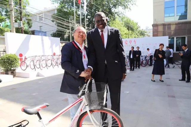 徐科、彭玉美、王海京、王汝鹏等向受援国红会代表转赠博爱单车