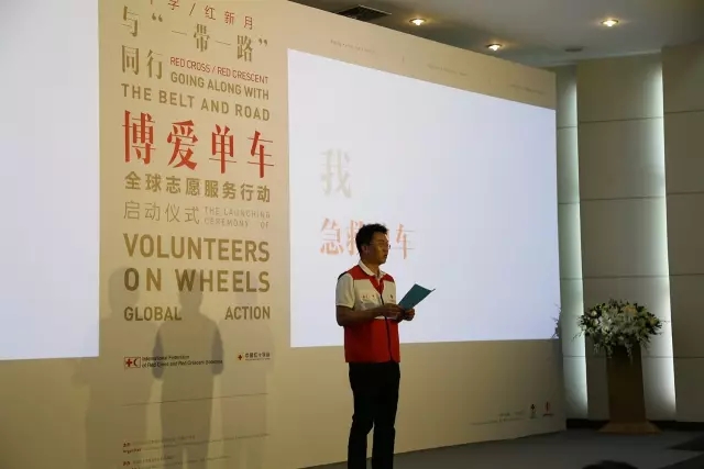 哈吉·阿西在演讲中分析了人道事业面临的新挑战以及“一带一路”对于人道事业发展带来的新机遇,对红十字/红新月与“一带一路”同行的理念高度认同。他期待“一带一路”和红十字/红新月运动的有机结合,共同推动“一带一路”国家人道事业的发展。随后,几位红十字志愿者登台讲述了自己在开展志愿服务过程中与人道单车的故事。
