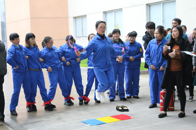 隆重的授旗仪式后,随着活动总指挥吴建明一声令下,21支战队挥舞战旗在高呼队名队号中开始激烈比拼。指压板跳绳、定点投掷、安全消防知识抢答跑、五人六足、红歌接力、拔河以及包饺子比赛等竞赛项目集趣味性、知识性、协作性和竞争性于一体。选手们在团体项目中密切配合、相互鼓励,在单人项目中你追我赶、奋勇争先。加油声、欢呼声、欢笑声此起彼伏,比赛现场紧张而欢乐。