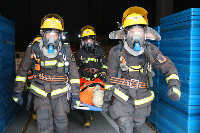 10时许,模拟场景演练正式开始,成品仓库“起火冒烟”,发生火灾,因火势较大,造成2名工作人员被困。发现险情后,公司消防应急处置小组迅速集结,对事故进行初期应急处置,同时拨打“119”报警。