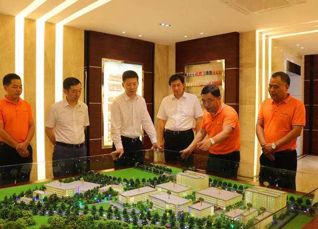卢卫芳总裁对冒着酷暑前来的陈时飞副局长一行表示感谢,并介绍了公司目前发展情况和未来发展思路,重点就公司产品研发、科技创新、维康医药大健康产业园建设等方面情况作详细介绍。