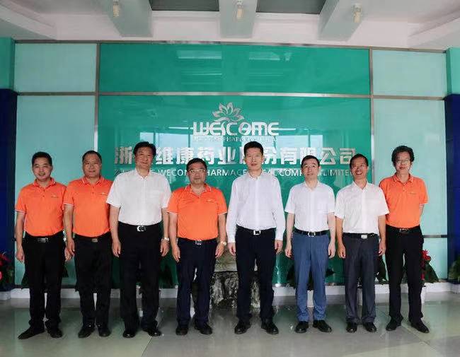 2020年7月30日下午,国家药品监督管理局副局长陈时飞一行莅临公司调研指导,浙江省药品监督管理局副局长邵元昌,丽水市副市长杨秀清,丽水经济技术开发区党工委书记、管委会主任刘志伟,丽水市政府副秘书长曹永跃,丽水市市场监管局局长夏海国等领导陪同调研。公司总裁卢卫芳、党委书记刘根才、常务副总裁吴建明、副总裁戴德雄等热情接待。