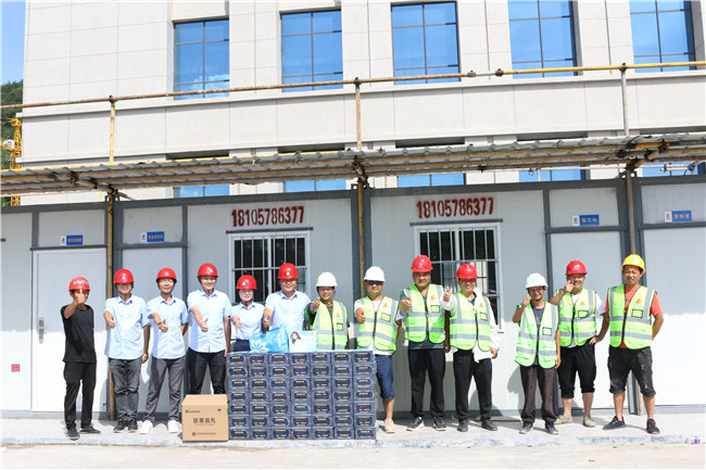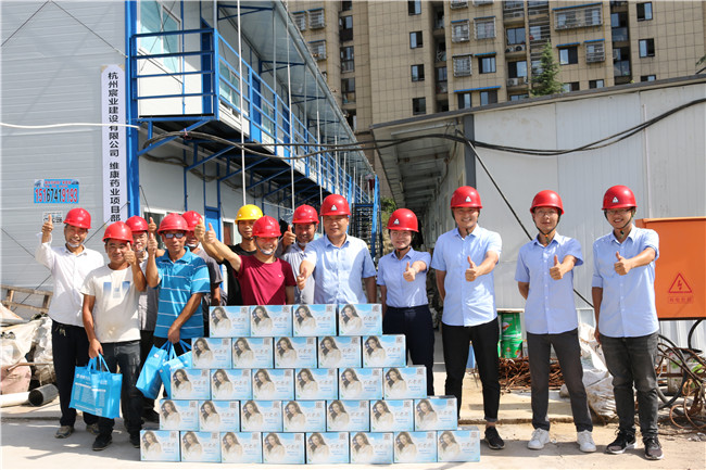 7月20日下午,开云体育平台官方网站-开云体育(中国) 执行总裁吴建明,党委副书记、董事会秘书朱婷,项目总监金炳武等慰问组一行来到项目工程现场,代表公司向奋战在一线的建筑工人传达关心和慰问,为他们在公司项目建设中作出的贡献表示敬意和感谢,并为建筑工人们送上银黄滴丸、藿香正气水、仁丹、清凉油、矿泉水等消暑降温物资,把清凉送到施工一线,把关怀送到工人心坎。