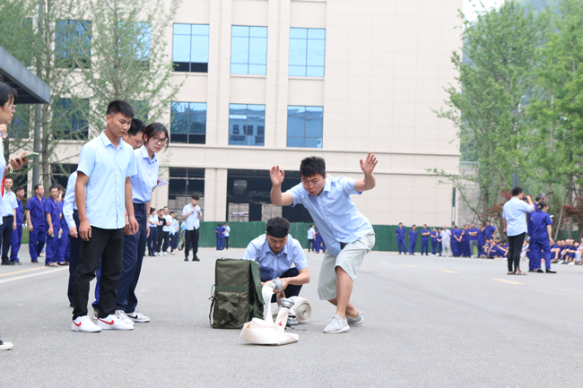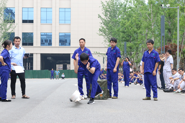 上午,活动在一场别开生面的消防运动会中拉开帷幕。此次消防技能比武运动会由水带接力比赛、穿戴消防服和正压空气呼吸器比赛组成,共有14支队伍参与角逐。在简短的热身运动后,随着裁判一声令下,精彩的比赛开始了!水袋背包、摸石头过河、蒙眼转圈、连接消防水带等接力环节紧张刺激,精彩纷呈。赛场上,队员们默契配合,你追我赶,奋勇拼搏;赛场下,拉拉队加油声、呐喊声、掌声、欢呼声连绵不断。经过激烈的比拼,质量控制队夺得第一名,行政、信息队荣获第二名,制造二部二车间队获得第三名。在欢乐紧张的比赛中,大家增长了消防知识,提升了消防技能,实现了寓教于乐,以赛促学的比赛初衷。