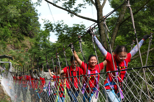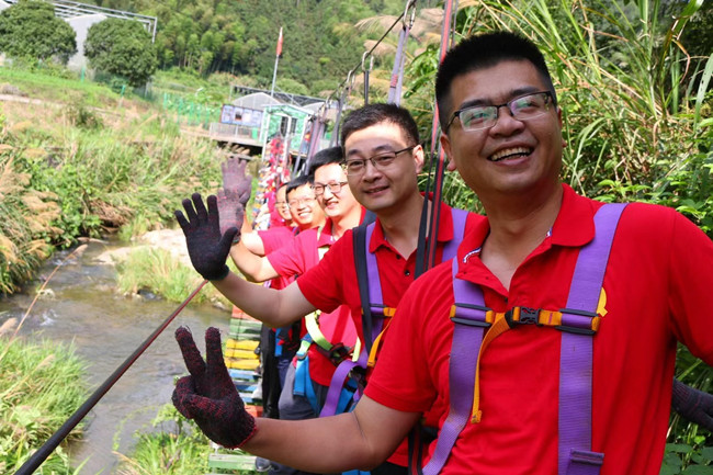行走在当年红军挺进师曾经走过的利山古道,开云体育平台官方网站-开云体育(中国) 的党员同志们体会着重走红军路的艰辛和光荣。大家来到模拟当年红军飞夺泸定桥的现场,铁索沿溪流峡谷逆流而上,耳畔是潺潺的流水声,仿佛隐隐约约有激烈的枪声和隆隆的炮火声,恍若回到了当年充满硝烟的战场,大家在不断闯关突破中深刻感受革命烈士的顽强拼搏和不屈精神;“雷区取水”、“合力建塔”环节,大家团结合作,默契配合,以优异的成绩证明这是一个朝气蓬勃、充满活力、干劲十足的团队!