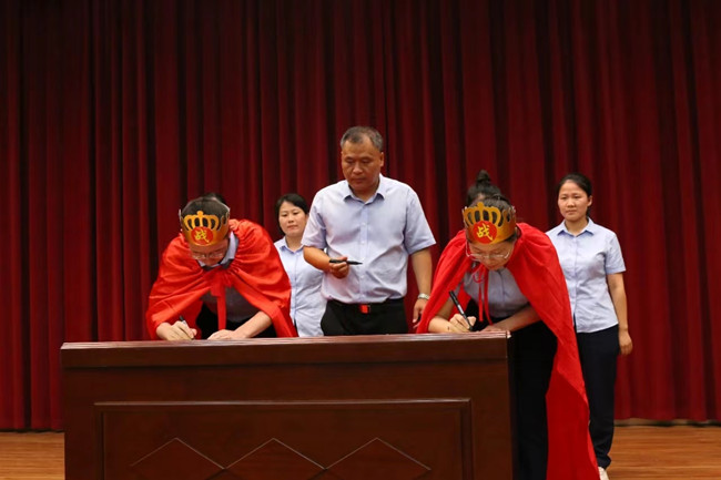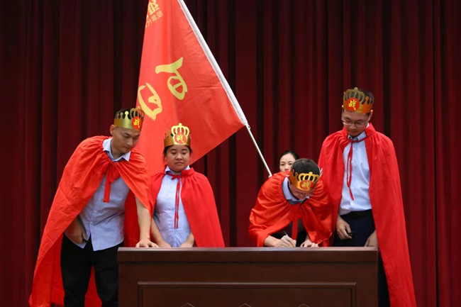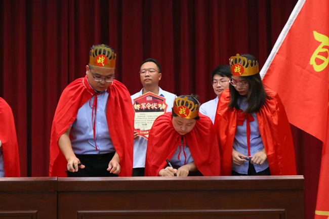 征途道阻且长,梦想热切坚定。各体系负责人分别上台“戴冠披甲”,签署“百日攻坚,质量至上”军令状,各方团队在领导的带领下高呼冲刺目标口号,全体人员斗志昂扬,立誓为共同的目标奋勇攻坚,争创佳绩!一面面旗帜代表一份份责任和信任,维康人以声声铿锵誓言诠释必胜决心,吹响下半年“百日攻坚”冲锋集结号。