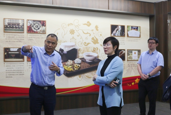 董事吴建明对蔡亮主任一行表示热烈欢迎,并陪同走进维康医药大健康产业园,参观了企业展示中心、维康中药博物馆等,并介绍了公司产业布局、未来发展规划以及中医药文化传承等方面的情况。