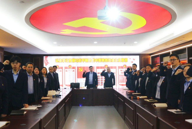 “我志愿加入中国共产党,拥护党的纲领,遵守党的章程,履行党员义务,执行党的决定,严守党的纪律……”会议在铮铮誓言声中拉开帷幕,党委副书记朱婷领誓,全体人员举起右臂共同宣誓,铿锵有力的誓言展现维康党员的饱满热情和昂扬斗志。