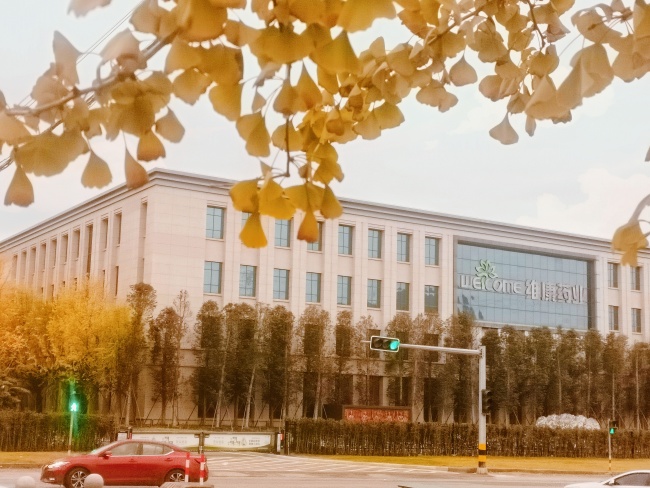 风过寒枝动,秋色已满园。近日,一幅绚丽的冬日画卷在维康医药大健康产业园内徐徐展开。近百棵银杏树汇聚成一片金色的海洋,其间点缀着一簇簇鲜红的海棠,在凛凛寒风中,银杏叶如舞动的华裳,海棠如静立的粉霞,为园区增添了一抹醉人的诗意与浪漫。