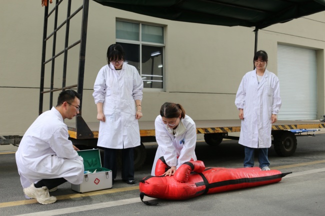 上午10时,全体人员在会议中心参加专业救援培训。丽水市企业互助救援联合会陈秀教官系统讲授了心肺复苏术、海姆立克急救法及创伤包扎技术,通过人体模型进行分步演示。工程部经理赖兴隆重点讲解了微型消防站装备的使用要点,结合企业典型火灾案例强调“黄金三分钟”救援的重要性。