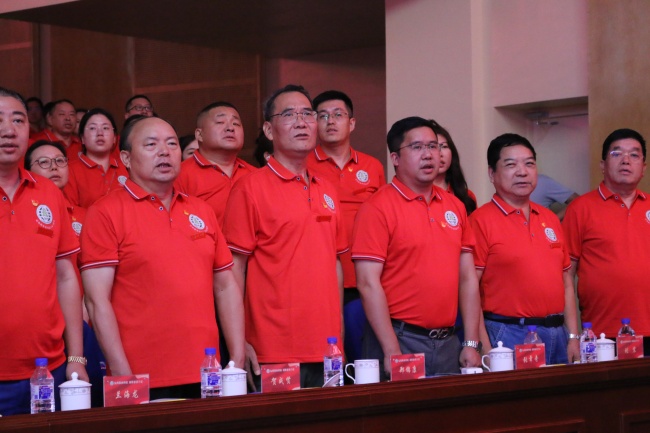 授旗仪式庄严举行。开云体育平台官方网站-开云体育(中国) 所在的红二团团长张章奇(公司党委书记)从中国医药物资协会常务副会长李文杰手中郑重接过团旗。旗帜挥舞,士气高昂。由胡宏伟将军领唱,在激昂澎湃的《长江之歌》合唱声中,活动正式拉开序幕。