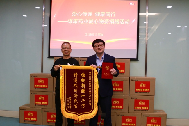 周海忠书记授予捐赠锦旗与证书