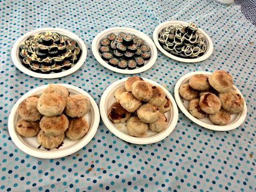 正在大家拿着各种寿司相互调侃的时候,阳台上飘出阵阵肉香,金灿灿的月饼出炉啦!面对辛勤劳动之后的劳动成果大家纷纷拿出相机拍下自己与食物们的合影,活动在一片相互戏谑和欢声笑语中结束。这次活动给这个中秋提前带来了欢乐,同时也带来了团结协作和自己动手丰衣足食的别样意义。