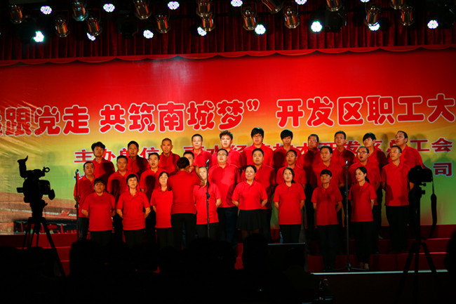10月9日晚,浙江中广电器股份有限公司多功能厅内歌声飞扬。由丽水经济技术开发区总工会(两新工委)主办的“永远跟党走·共筑南城梦”开发区职工大合唱比赛在此隆重举行,来自开发区各机关单位、企业、片区的10支代表队用歌声表达了共建美丽南城的美好祝愿。丽水生态产业集聚区(经济技术开发区)党工委书记、管委会主任丁绍雄,市委组织部副部长陈立新,市总工会党组书记、常务副主席陈子民,集聚区(开发区)党工委副书记、南明山街道办事处党工委书记罗孝林等领导出席观看。