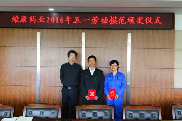 弘扬劳模精神,传递榜样力量。2016年4月29日,公司召开专题表彰会议,授予OTC事业部陈飞、制造二部三车间颜伟珍、行政部潘全金,维康(丽水)大药房江宏鑫、维康(杭州)大药房刘珊珊等5名员工“维康劳动模范”荣誉称号。