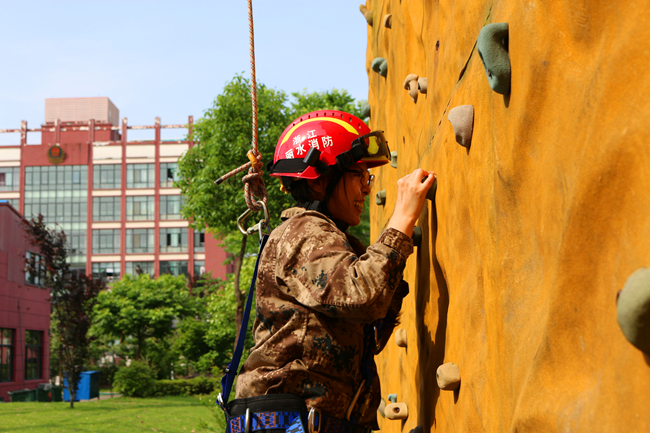 开发区消防大队的教官首先带领大家参观了消防体验馆和消防车,向大家介绍了常用的消防装备与消防安全知识。实训环节中,所有参训人员认真参与,团结协作,出色完成了列队训练、户外攀岩等一系列活动任务,展现了维康青年朝气蓬勃、积极向上的精神面貌。
