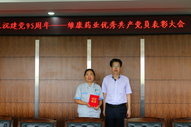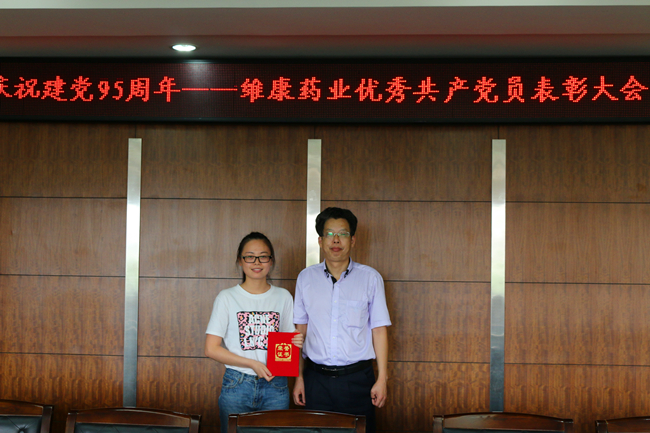 党支部书记刘根才为优秀党员刘微微颁发荣誉证书