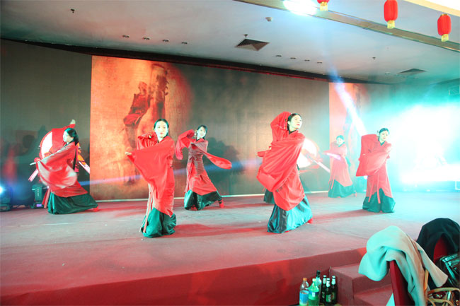 晚会在维康艺术团激情澎湃的水鼓舞《中国龙》中拉开帷幕。随后舞蹈、歌曲、灯光秀、诗朗诵等10余个由维康员工自编自导自演的节目陆续上演,生产部选送的广场舞《开门红》将晚会带向第一个高潮;处方药事业部、商务部选送的三句半《向前冲》鼓舞着每个维康人勇敢向前冲;市场部陈杰男扮女装带来的歌曲《新贵妃醉酒》,中国古典元素与流行时尚完美结合让人如痴如醉;生产基地选送的舞蹈《礼仪之邦》,将中华礼仪之美展现在大家面前;而生产基地选送的灯光秀《相亲相爱一家人》,科技感十足又温馨感人;维康大药房选送的《大海航行靠舵手》,带领我们重温火热年代激情;而市场部带来的诗朗诵《爱心飞翔》让我们回忆起百日会战时的精彩画面;医药零售选送的爵士舞《telephone》青春靓丽火热激情。晚会节目高潮迭起,气氛火热,不时响起雷动掌声。而在节目最后,由OTC事业部和商务部共同选送的情景舞《撸起袖子加油干》更是唱出了所有维康人的心声,2017年,让我们撸起袖子加油干,不断刷新各项记录!加油!