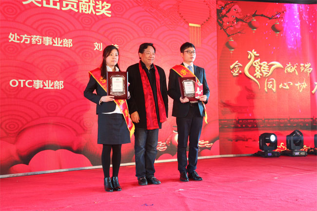 总经理刘根才、医药商业总经理吴建明为优秀员工颁奖