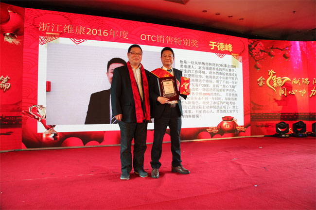 副总经理列建乐、OTC事业部总经理何家巨为销售精英颁奖