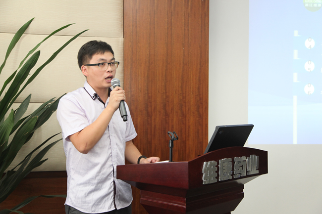 戴德雄副总经理率先做“研发创新·科技助力-浙江维康科研产品战略发展汇报”,对公司主打品种的独特研发点、企业获得的研发创新荣誉、研发工作现状、自主知识产权品种、公司近三年承担的重大科研项目及研发成果、相关专利数据库等信息化建设进程、研发团队建设、各大科研合作平台建设等领域分别做简要介绍。
