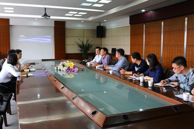 在二楼会议室,刘根才总经理向佘院长一行汇报了企业发展历程以及新药研发、团队建设、企业战略发展规划等。副总经理戴德雄重点就新药科技研发、技术平台创建等内容进行了详细介绍。双方就目前医药大健康产业状态、技术项目合作等方面进行深入交流和讨论。