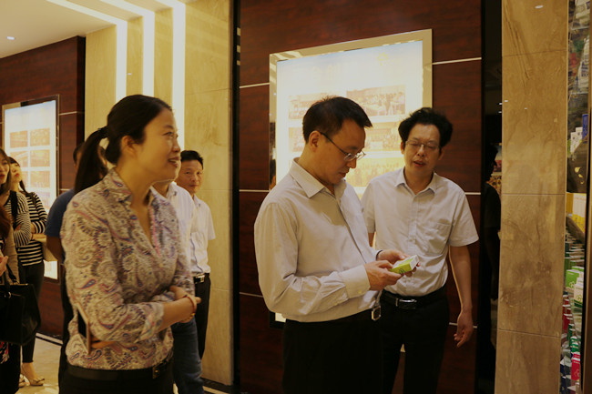 刘根才总经理陪同吕恒军局长一行参观了公司展示中心和维康科研苑,并介绍了公司生产、销售和市场规模情况,重点就科技创新、人才引进、品牌建设和未来规划作详细介绍。
