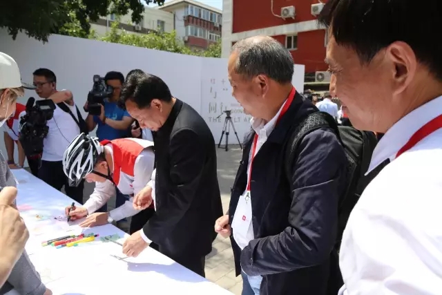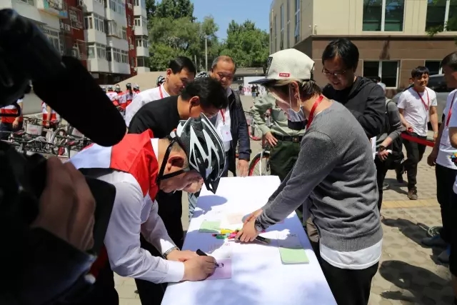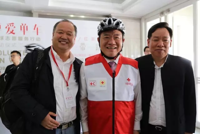 刘忠良等与陈竺、哈吉·阿西等与会领导嘉宾、红十字志愿者在院内骑行,感受博爱单车魅力