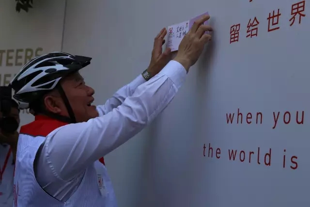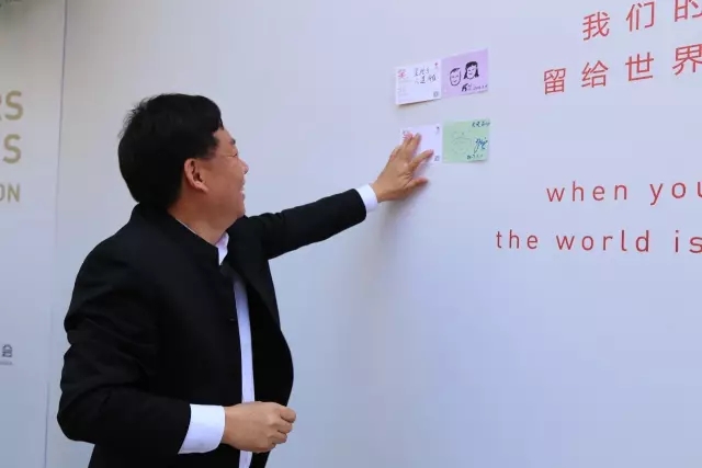 刘忠良等与陈竺、哈吉·阿西等一起画笑脸,并粘贴在心愿墙上
