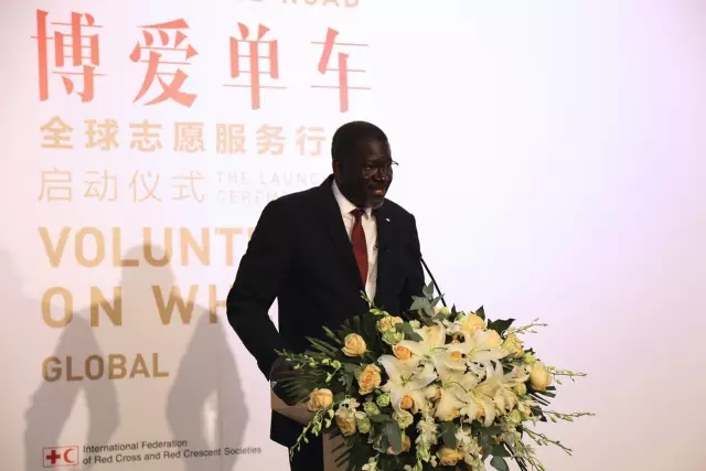 哈吉·阿西在演讲中分析了人道事业面临的新挑战以及“一带一路”对于人道事业发展带来的新机遇,对红十字/红新月与“一带一路”同行的理念高度认同。他期待“一带一路”和红十字/红新月运动的有机结合,共同推动“一带一路”国家人道事业的发展。随后,几位红十字志愿者登台讲述了自己在开展志愿服务过程中与人道单车的故事。