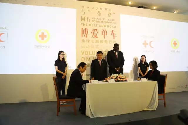 在陈竺和哈吉·阿西的共同见证下,中国红十字会副会长兼秘书长王平与红十字会与红新月会国际联合会东亚地区代表处主任彭玉美签署了博爱单车全球战略合作协议。随后,博爱单车由全球四位志愿者代表推出并展示。