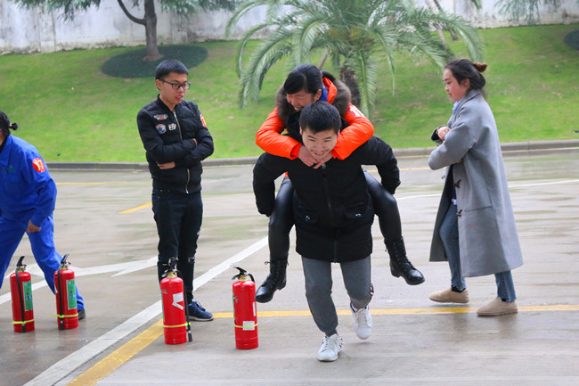 隆重的授旗仪式后,随着活动总指挥吴建明一声令下,21支战队挥舞战旗在高呼队名队号中开始激烈比拼。指压板跳绳、定点投掷、安全消防知识抢答跑、五人六足、红歌接力、拔河以及包饺子比赛等竞赛项目集趣味性、知识性、协作性和竞争性于一体。选手们在团体项目中密切配合、相互鼓励,在单人项目中你追我赶、奋勇争先。加油声、欢呼声、欢笑声此起彼伏,比赛现场紧张而欢乐。