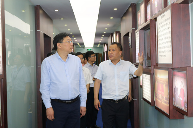 吴建明对考察组一行的到来表示欢迎,并陪同参观了公司展示中心、维康科研苑、博士后工作站以及院士工作站,介绍了公司发展历程、发展情况和未来发展思路,重点就公司产品研发、人才集聚、科技创新和平台创建等方面情况作详细介绍。