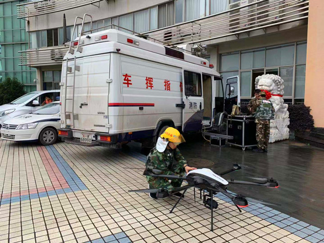 随后,丽水市消防支队、开发区消防大队相继赶到现场,利用洒水车、消防云梯、无人机等相关救援设施迅速展开救援抢险工作。在企业和消防人员的协同配合下,现场火势成功被扑灭,并救出全部被困人员。