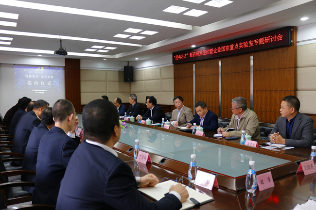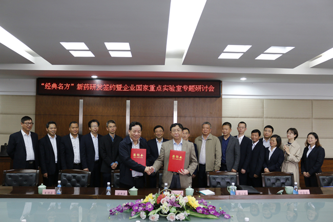 刘忠良董事长与林瑞超院士共同签署了“经典名方”新药研发合作协议,宣告双方合作正式启动,市发改委、科技局、经信局、科协和开发区领导共同见证了这一时刻,并纷纷表态,将义不容辞、一如既往的关注、支持和服务企业,助力企业发展壮大。