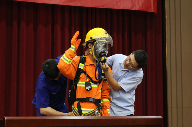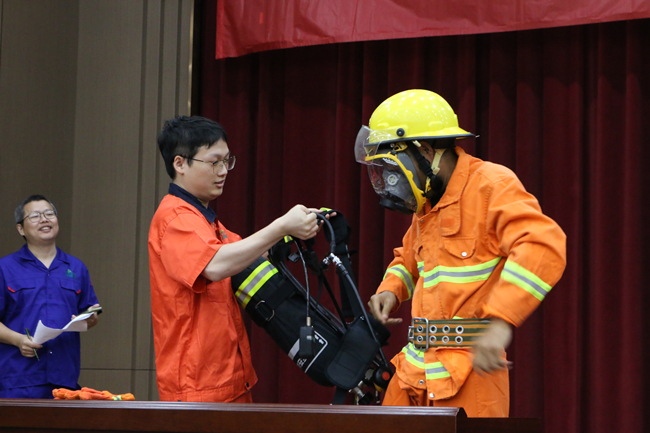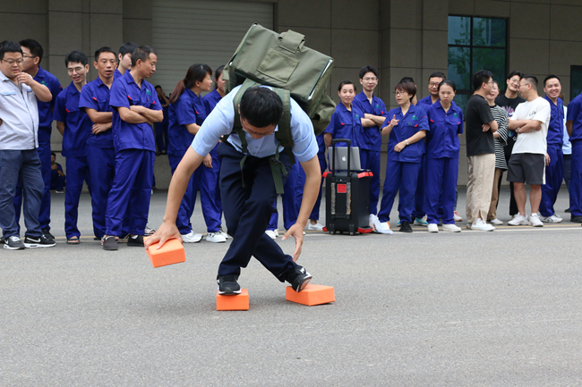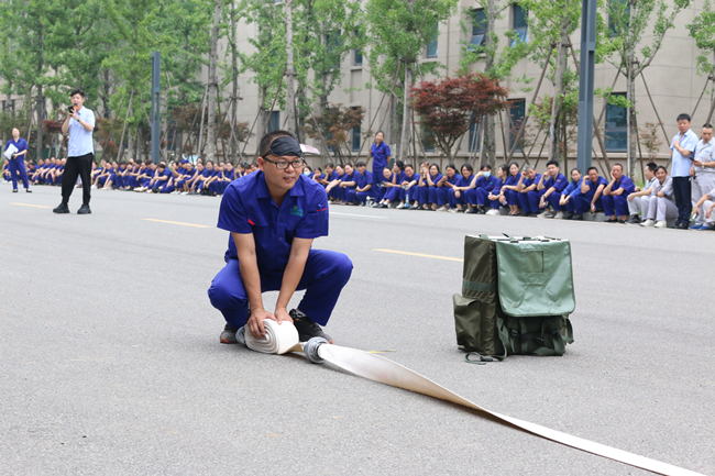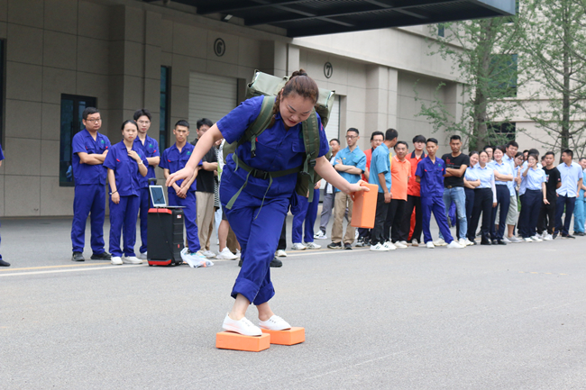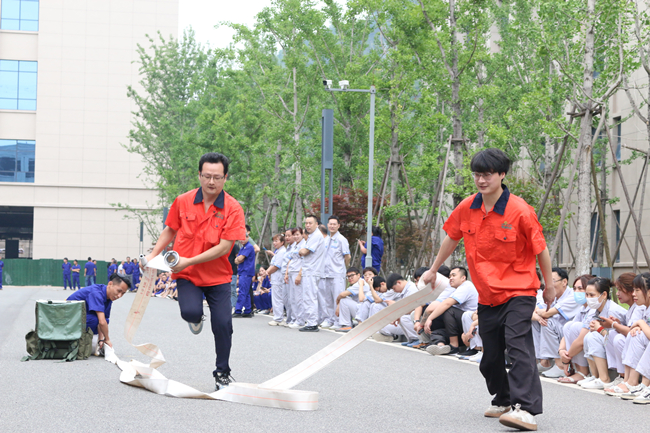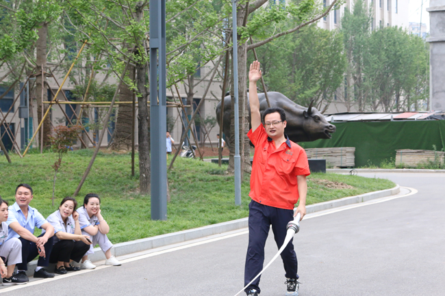 上午,活动在一场别开生面的消防运动会中拉开帷幕。此次消防技能比武运动会由水带接力比赛、穿戴消防服和正压空气呼吸器比赛组成,共有14支队伍参与角逐。在简短的热身运动后,随着裁判一声令下,精彩的比赛开始了!水袋背包、摸石头过河、蒙眼转圈、连接消防水带等接力环节紧张刺激,精彩纷呈。赛场上,队员们默契配合,你追我赶,奋勇拼搏;赛场下,拉拉队加油声、呐喊声、掌声、欢呼声连绵不断。经过激烈的比拼,质量控制队夺得第一名,行政、信息队荣获第二名,制造二部二车间队获得第三名。在欢乐紧张的比赛中,大家增长了消防知识,提升了消防技能,实现了寓教于乐,以赛促学的比赛初衷。