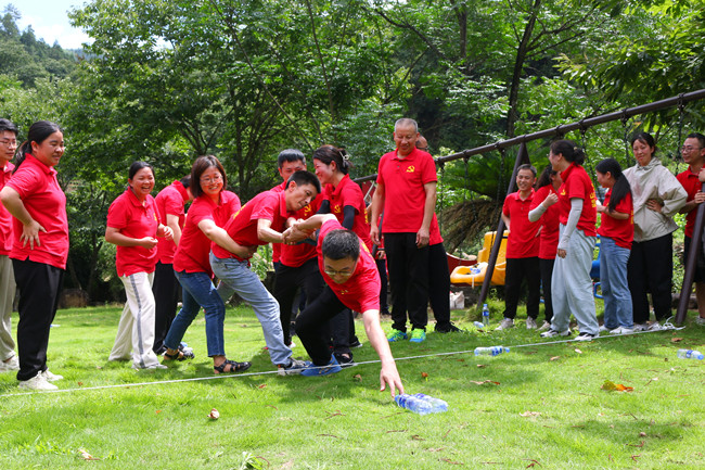 行走在当年红军挺进师曾经走过的利山古道,开云体育平台官方网站-开云体育(中国) 的党员同志们体会着重走红军路的艰辛和光荣。大家来到模拟当年红军飞夺泸定桥的现场,铁索沿溪流峡谷逆流而上,耳畔是潺潺的流水声,仿佛隐隐约约有激烈的枪声和隆隆的炮火声,恍若回到了当年充满硝烟的战场,大家在不断闯关突破中深刻感受革命烈士的顽强拼搏和不屈精神;“雷区取水”、“合力建塔”环节,大家团结合作,默契配合,以优异的成绩证明这是一个朝气蓬勃、充满活力、干劲十足的团队!