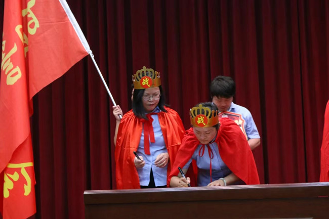 征途道阻且长,梦想热切坚定。各体系负责人分别上台“戴冠披甲”,签署“百日攻坚,质量至上”军令状,各方团队在领导的带领下高呼冲刺目标口号,全体人员斗志昂扬,立誓为共同的目标奋勇攻坚,争创佳绩!一面面旗帜代表一份份责任和信任,维康人以声声铿锵誓言诠释必胜决心,吹响下半年“百日攻坚”冲锋集结号。