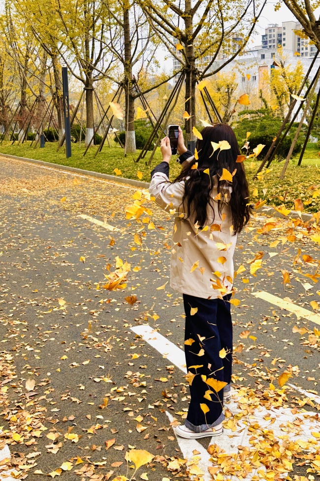 银杏摄影大赛上,园区内的银杏林成为了大家的创作源泉。大家散布在园区的各个角落,举起手中的相机或手机,化身摄影师,用镜头捕捉他们眼中银杏的独特魅力。有的专注于拍摄满地金黄的银杏叶,生动地展现叶片的纹理与金黄的色泽,仿佛在诉说着岁月的故事;有的则以整片银杏林为背景,展现出那一片金黄的壮阔之景,试图将银杏所营造出的诗意氛围完美记录下来......