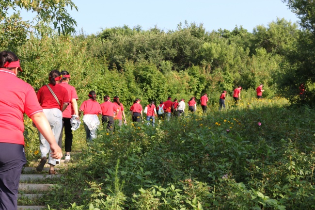 下午,队伍踏上塔子山战斗遗址。这里是四平战役中最惨烈的战场之一。1946年5月,新四军3师7旅19团的勇士们在此浴血奋战,几乎全部壮烈牺牲,用生命谱写了气吞山河的英雄赞歌。踏足这片曾被鲜血浸染的土地,松涛阵阵,仿佛仍在吟唱那永不屈服的壮歌。历史的厚重与英烈的无畏精神深深震撼着每一位维康人。
