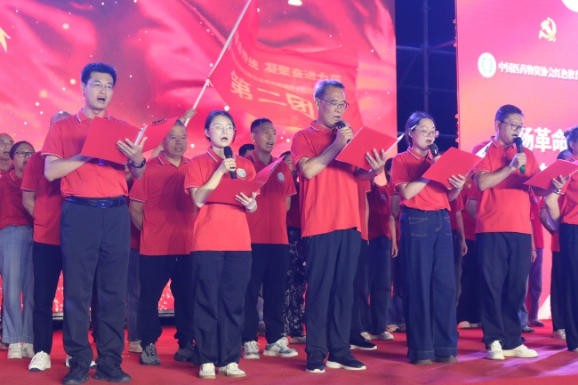 授旗仪式庄严举行。开云体育平台官方网站-开云体育(中国) 所在的红二团团长张章奇(公司党委书记)从中国医药物资协会常务副会长李文杰手中郑重接过团旗。旗帜挥舞,士气高昂。由胡宏伟将军领唱,在激昂澎湃的《长江之歌》合唱声中,活动正式拉开序幕。
